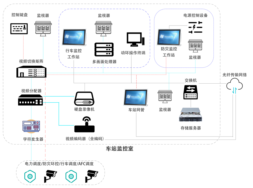 CCTV閉路電視監(jiān)控系統(tǒng)由安防網(wǎng)絡(luò)子系統(tǒng)、安防集成管理子系統(tǒng)、綜合電視監(jiān)控子系統(tǒng)、門禁子系統(tǒng)、車輛段/停車場(chǎng)和高架區(qū)間入侵探測(cè)子系統(tǒng)、以及車站緊急告警子系統(tǒng)等構(gòu)成。實(shí)現(xiàn)對(duì)重點(diǎn)區(qū)域的出入管理、登記、實(shí)時(shí)視頻監(jiān)控和入侵探測(cè)等功能。