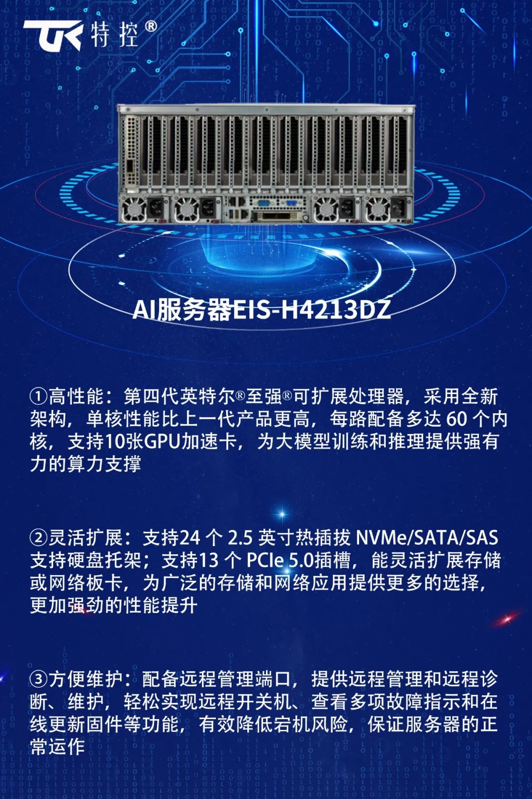 面對AI對算力的需求以及算力市場的發(fā)展,特控將不斷提升硬件的性能和能效,推動算力技術(shù)創(chuàng)新,賦能千行百業(yè)。